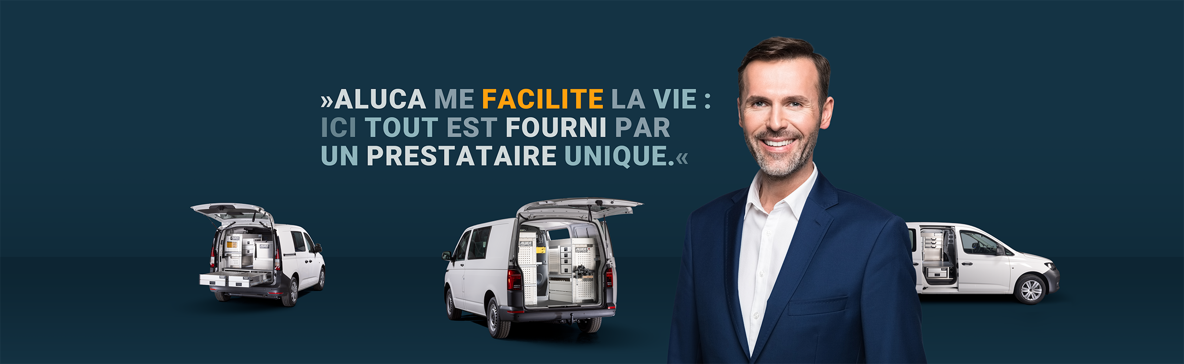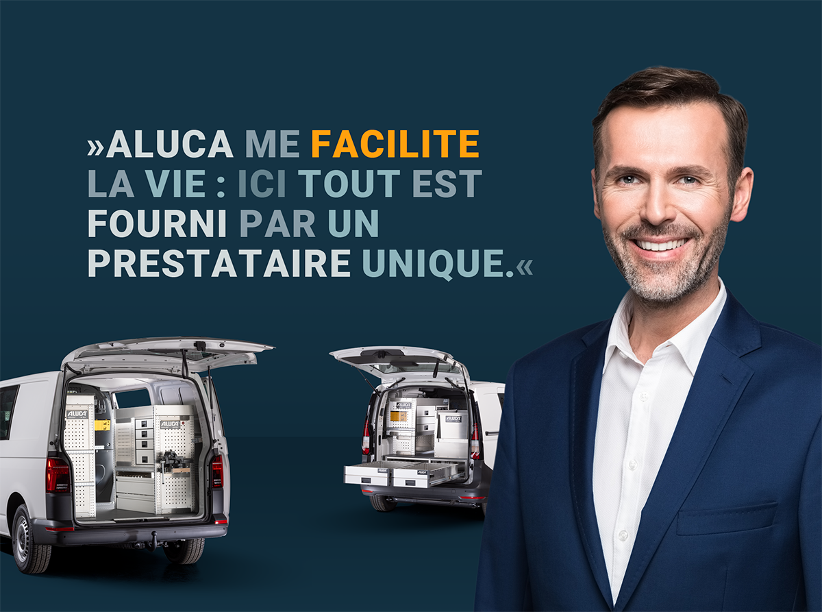 Aidez vos clients à donner le meilleur d’eux-mêmes dans leur travail ! Avec ALUCA, c’est rapide et facile : Nous sommes le premier fabricant haut de gamme pour des équipements automobiles de haute qualité et des services pour une utilisation professionnelle. Nos trois packs préconfigurés garantissent à votre client un intérieur parfait. Quelle que soit la classe ou la taille de sa voiture, qu’il s’agisse de fourgonnettes, fourgons et grands fourgons, le client quitte votre concession avec son atelier clé en main à emporter ou le poste de travail mobile optimal. La satisfaction de vos clients en toute simplicité.